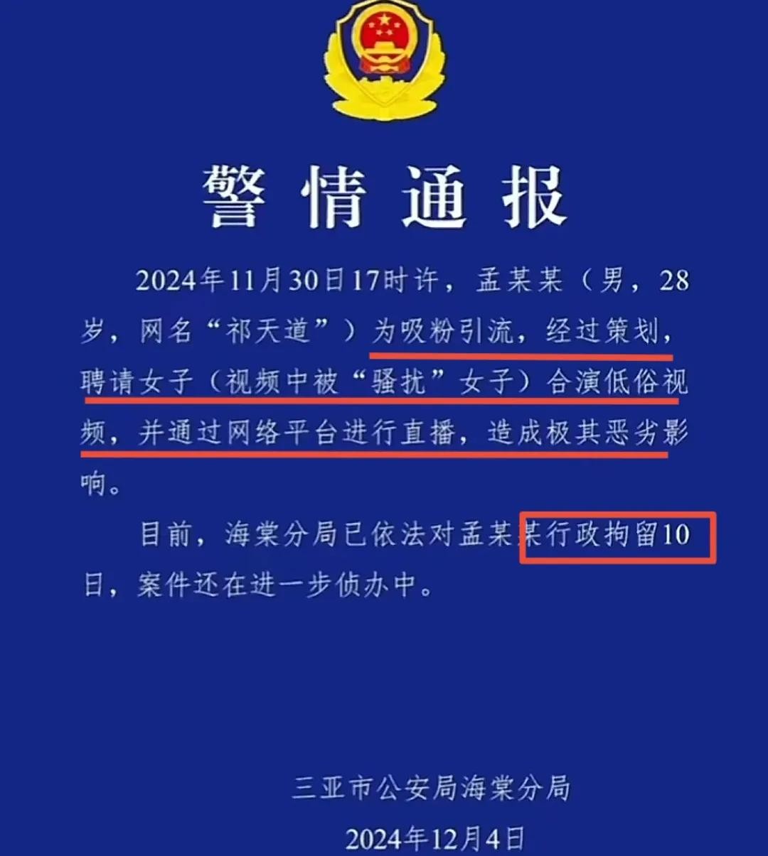 #千万粉丝网红祁天道擦边调戏女生##网红祁天道被行拘##4500万粉丝网红祁天道直播权限被封#