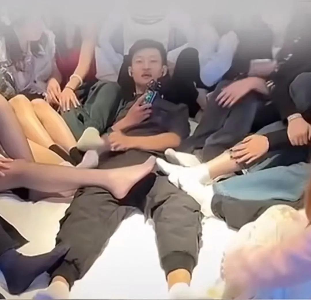 可以看出,该网红直播视频中,好几个大老爷们低头“围观”女孩屁股,而网红“祁天道”用竹签扎女孩屁股的做法,简直就是地痞流氓,妥妥的犯罪。