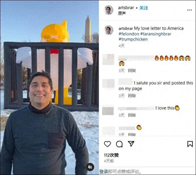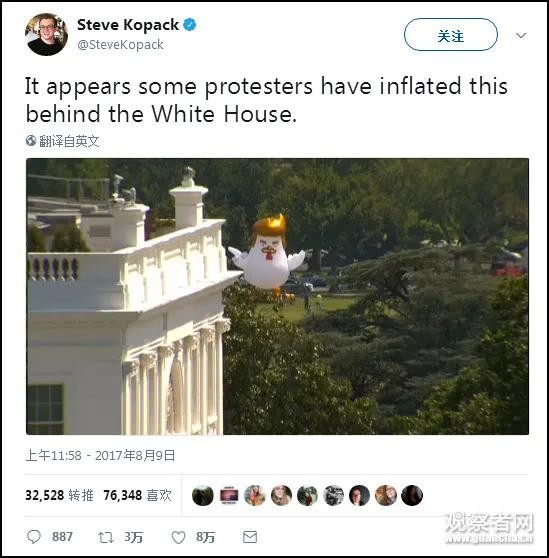 据悉,这只被称为“特朗普鸡”的巨型气球是一名艺术家为了表达对美国现任总统唐纳德·特朗普的不满和讽刺而制作的。这只巨型“特朗普鸡”身高约5米,模样憨态可掬,但却蕴含着深刻的政治寓意。