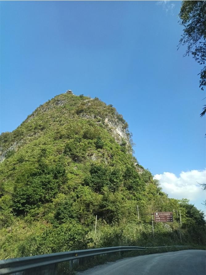 七百弄国家地质公园入口处,距离大化县城60多公里,这里立着一块牌坊,旁边便是七百弄国家地质公园的游客服务中心。从这里开始,沿着906乡道继续行驶,便正式进入了七百弄国家地质公园的范围。