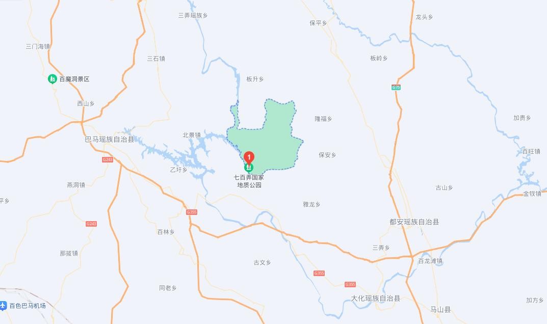 七百弄国家地质公园隶属大化县七百弄乡,一个可以用“贫瘠”来形容的乡镇。七百弄乡自民国二十二年(1933年)设立,原为都安瑶族自治县辖区,自大化瑶族自治县1988年10月成立后,便划归大化县所辖。
