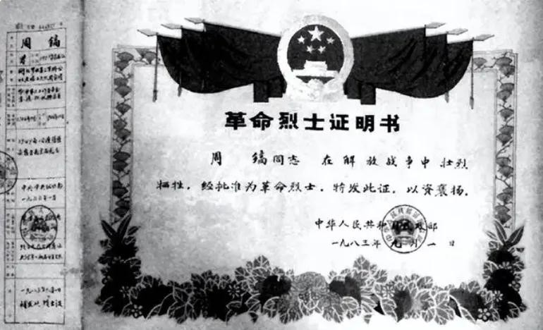 1965年12月28日,经由中共中央研究,组织部办公厅发布公告声明:“同意追认周镐(周治平)为革命烈士,并对其遗属予以照顾。”