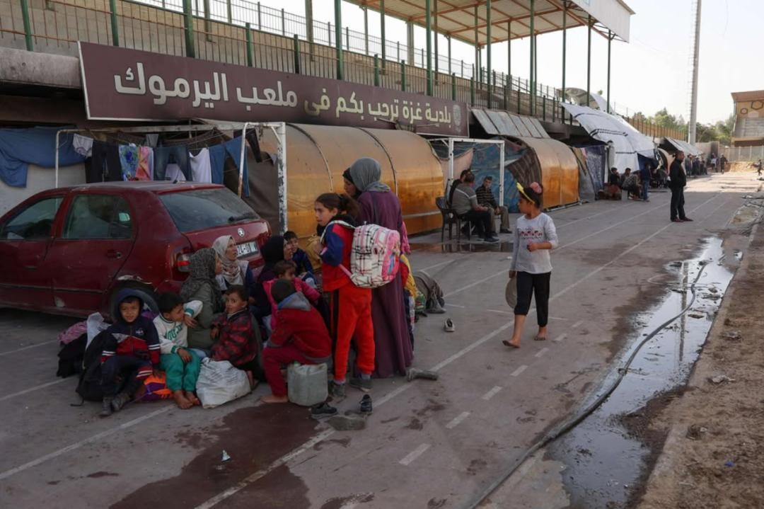 加沙地带若干个大型体育场的断壁残垣,成了流离失所的难民们栖身的倚靠。荒芜的草坪上搭起了简易的帐篷,残破的球门被当作了晾晒衣物的架杆,跑道上废弃的替补席,更成为了男女老少聚在一起休憩饮食的「凉亭」。