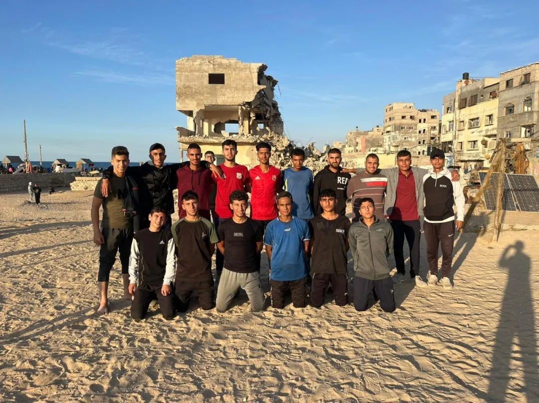 当战局缓和,巴勒斯坦足协立即克服重重险阻,在海滩边组织了一场为期2天的小型锦标赛,让各家俱乐部里活下来的年轻人齐聚一堂。没有奖杯、没有队服、没有裁判、甚至没有比赛名,但赛后所有人在蓝天和阳光下与战争废墟的合影,却在社交媒体上广为流传,因为那代表着:「我们仍在努力生活。」
