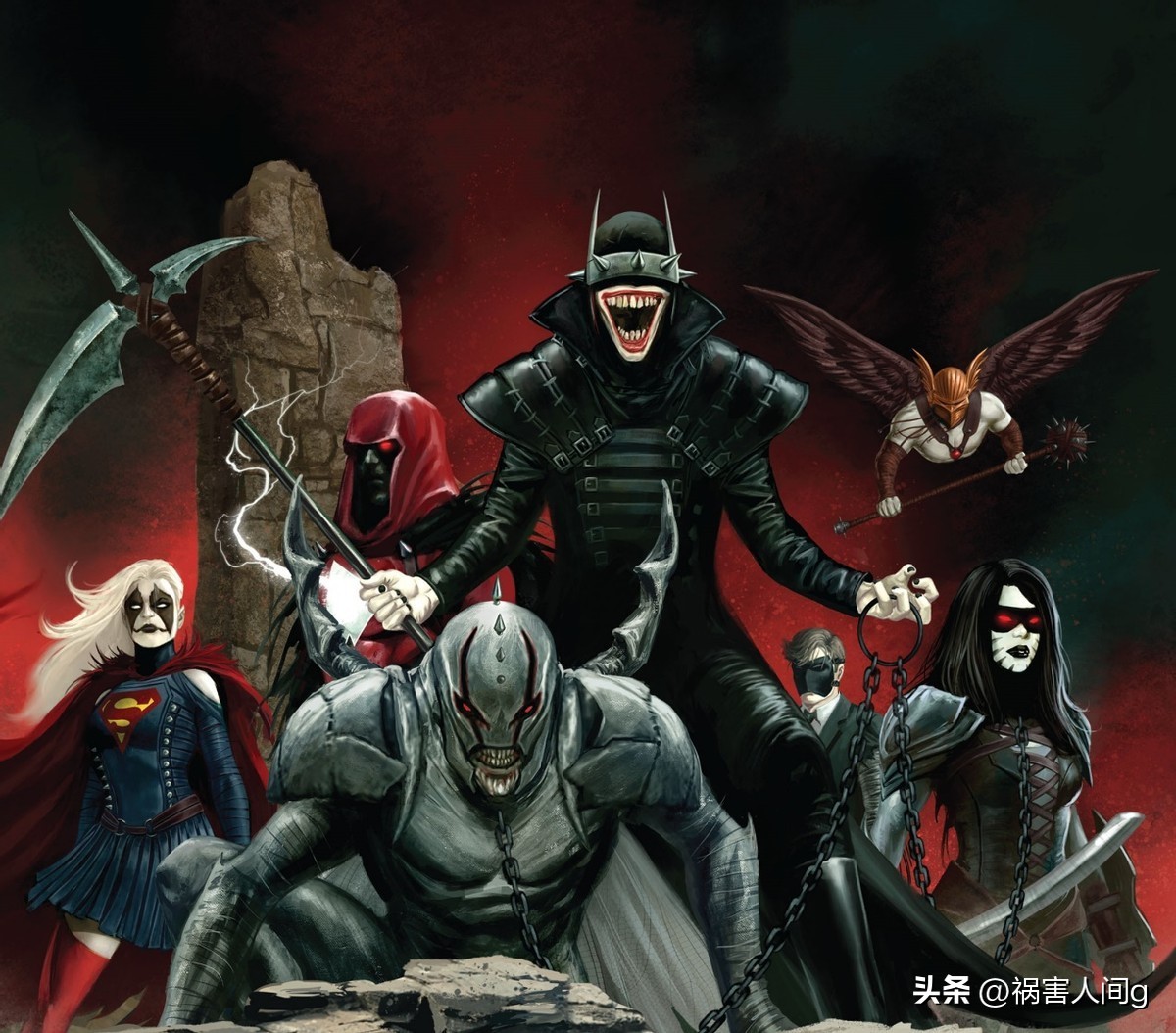 狂笑之蝠带领黑暗骑士团开始入侵主宇宙,帮助巴巴托斯征服整个多元宇宙,掀起了大事件《黑暗之夜金属》。