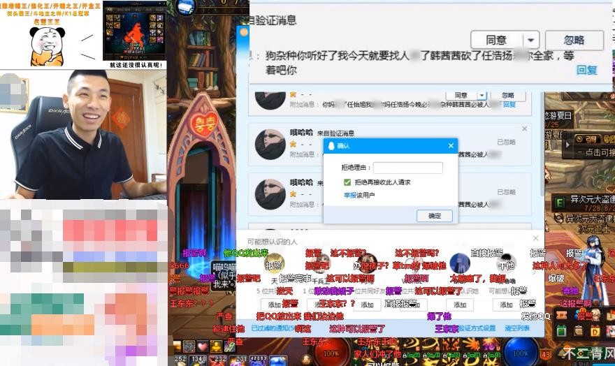 宝哥在直播中表示自己的QQ最近受到了限制,无法收到QQ好友验证消息,为什么呢?因为有个神经病总是骚扰自己,用恶意添加QQ的方式疯狂辱骂家人,说了很多难听的话。