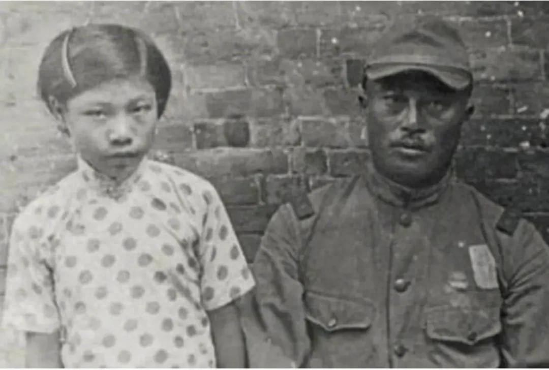 14、一名日军和当地小女孩的合影,可是小女孩惊恐的表情却出卖了他们。