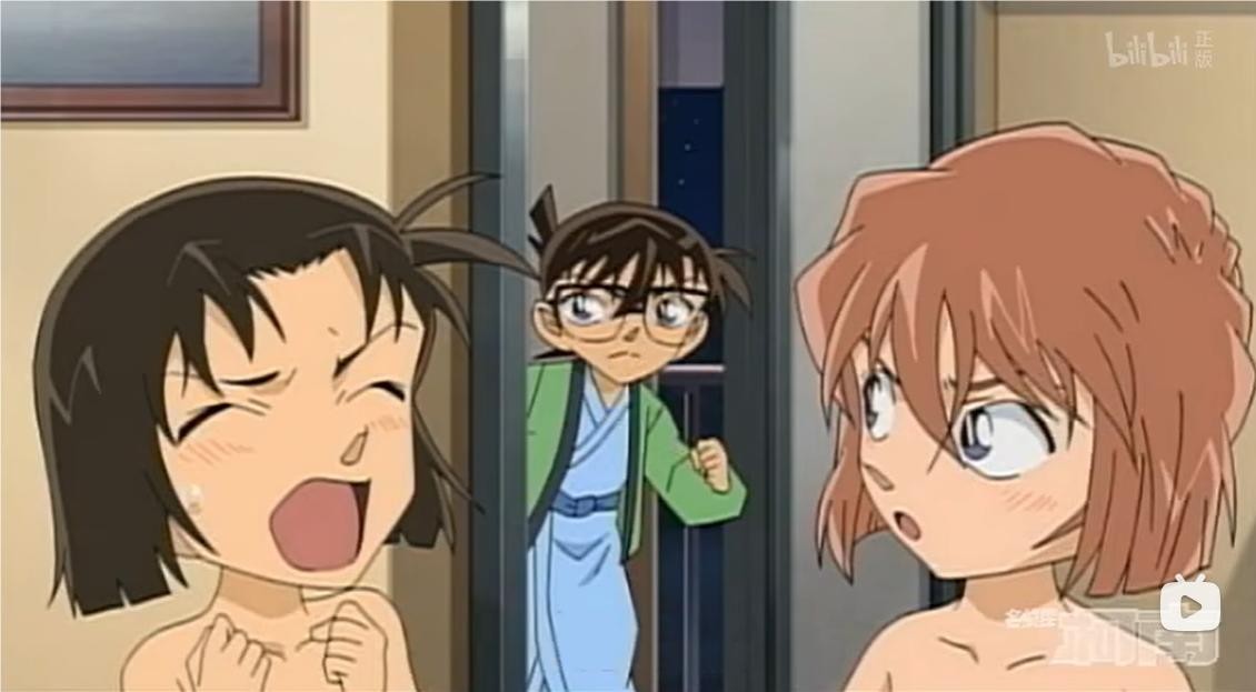 这一集是阿笠博士带着少年侦探团来到温泉旅馆,柯南、元太、光彦决定前往湖边的露天温泉,此时忽然听到步美的尖叫声。这时,柯南条件反射般地冲进了女浴室。然而,当他进入女浴室时,除了看到尸体外,还有看到了步美和灰原哀都处于没有穿衣服的状态,在后面灰原马上进行了报复。