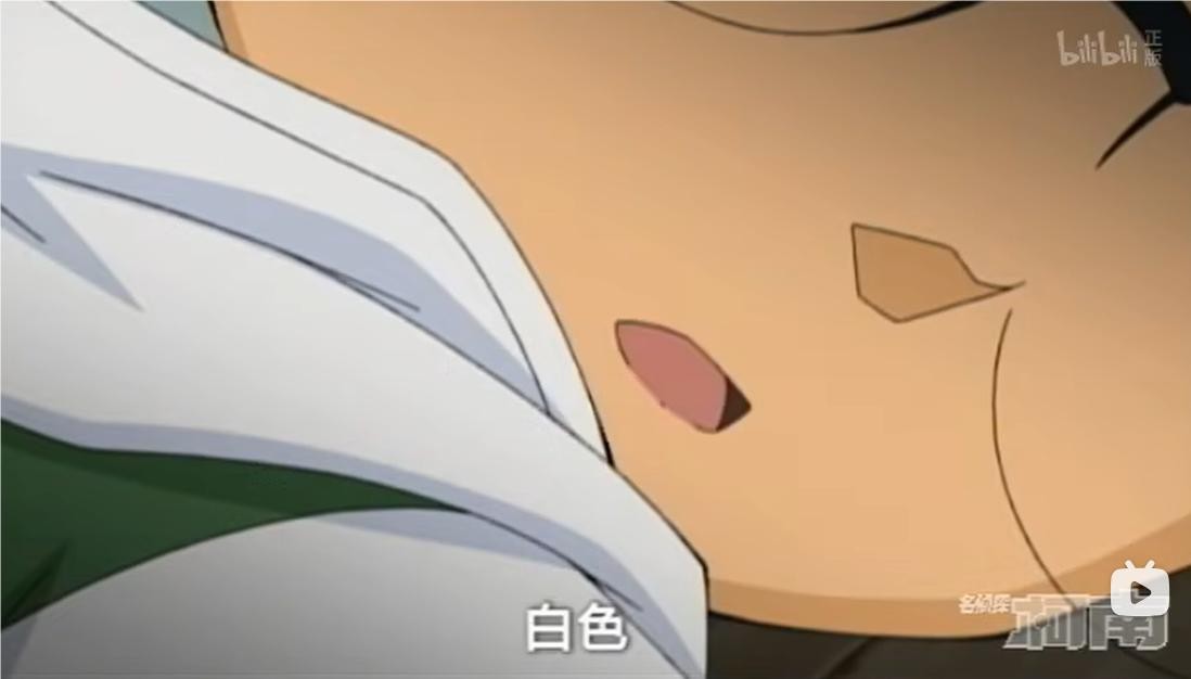 灰原哀经过自己的思考还是无法解决基德的手法,案件陷入了僵局,就蹲在倒地柯南的面前吐槽,结果柯南居然在装晕,并说了“白色”两个字,柯南因此再次成为灰原哀吐槽的对象。