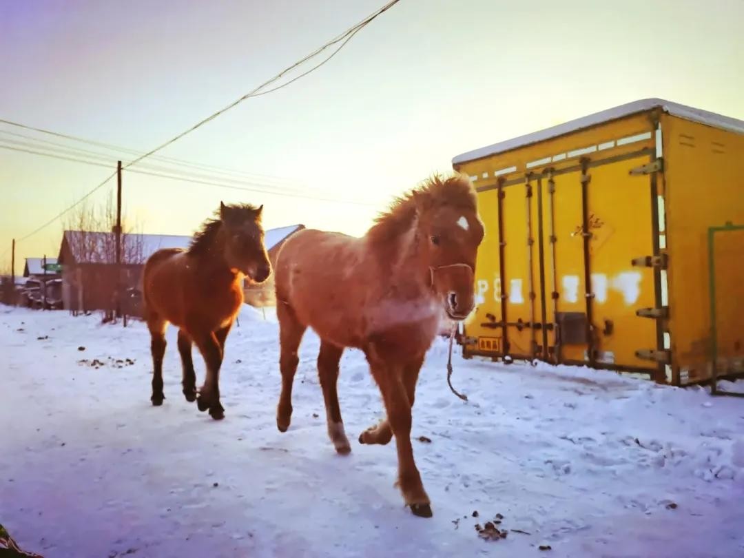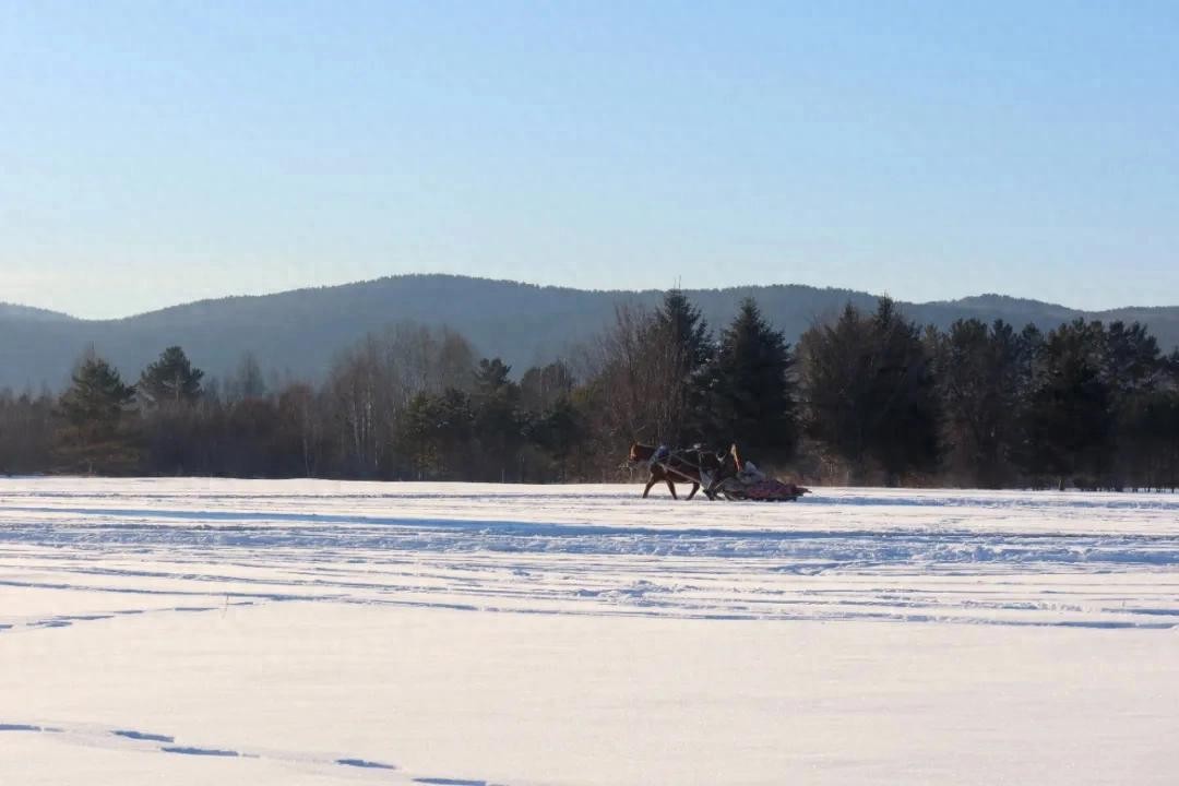 玩泼水成冰,坐马拉爬犁
