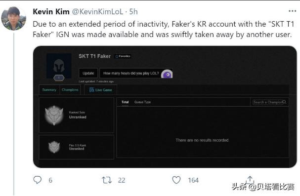 根据韩媒记者的透露,他表示Faker的这个韩服ID“SKT T1 Faker”已经被另外一位用户在使用了。