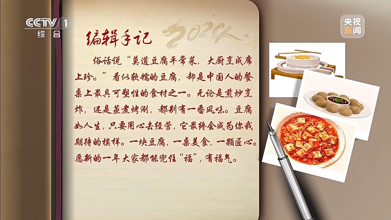 青春点亮中国年味儿,匠心酿造中华美食。豆腐,与“兜福”谐音,寓意在新的一年里能收获更多的福气。今天我们来认识两位“送福人”,看他们如何凭借看家本领,将普通的豆腐做成各式各样的美味佳肴。