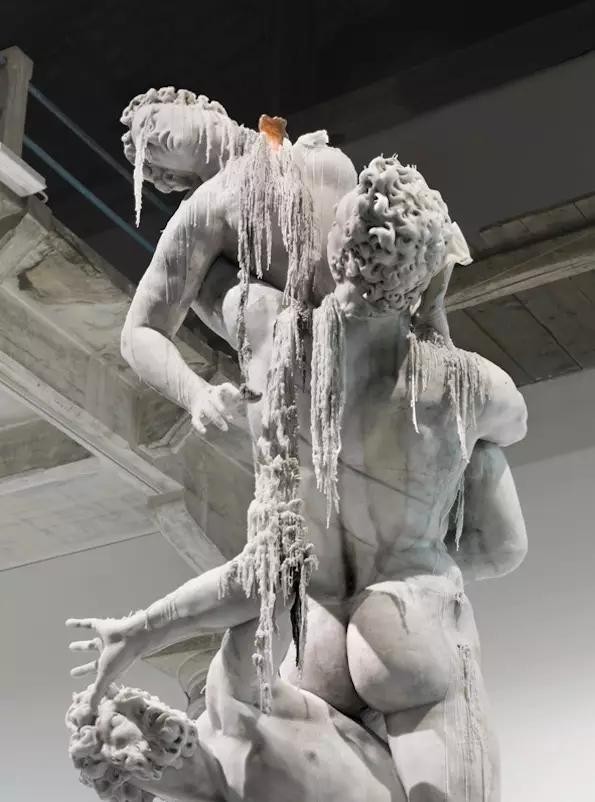 当代艺术家乌尔斯·费舍尔将詹波隆那的经典雕塑重现,这一蜡质的雕塑会慢慢燃尽,这个过程也正是传统经典与当代的另一种对话。
