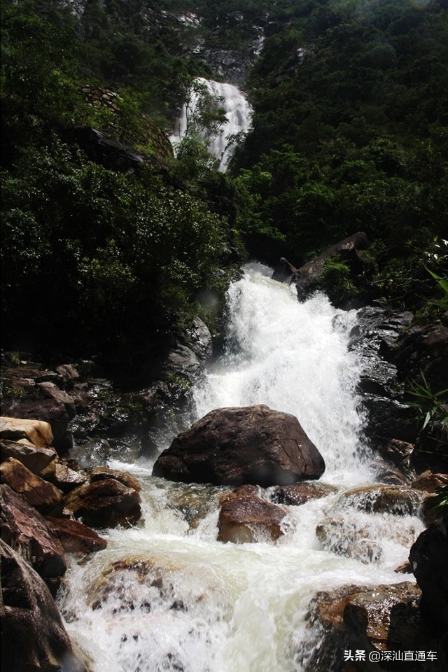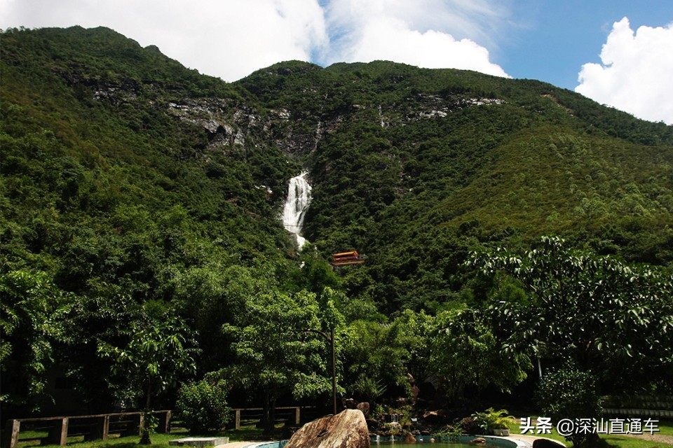 粤东海拔第一的高山延伸的银瓶山,有着“银屏飞瀑”之称