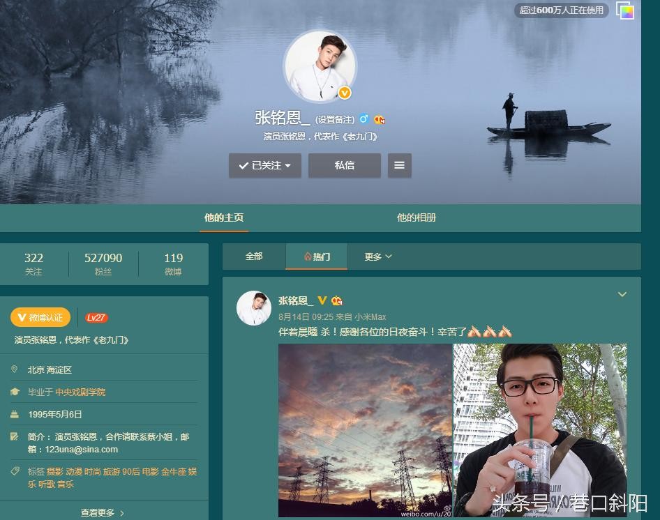 自从老九门播出,他微博粉丝数量剧增到52万,跟粉丝们互动也多了起来。