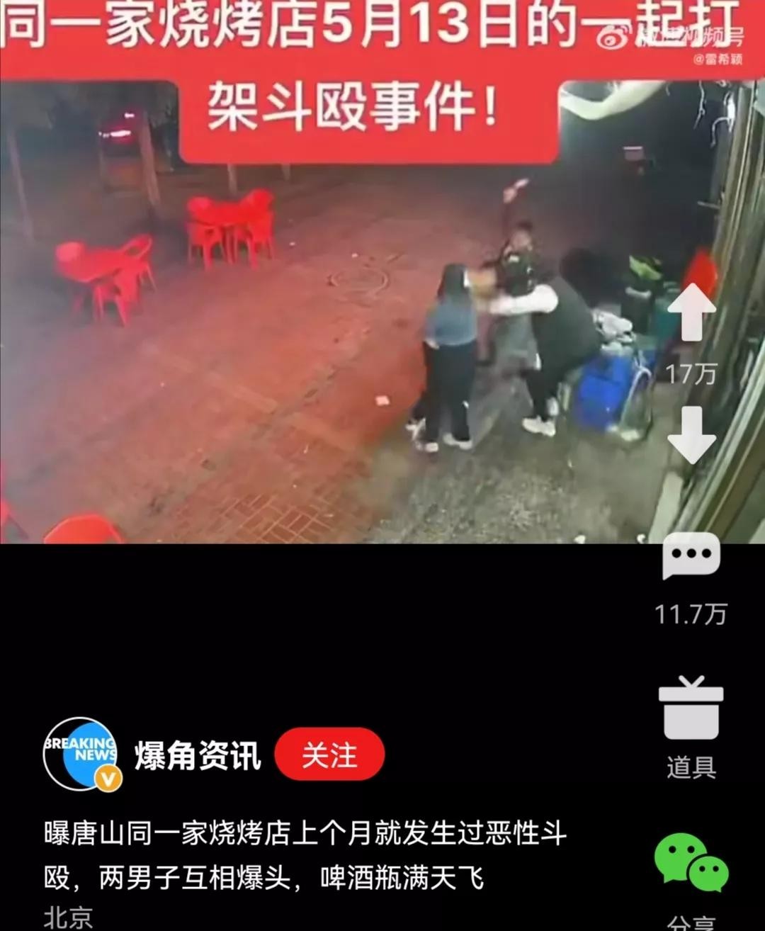 2022年5月13日,就在6月10日受害女子遭受暴力侵害的同一家烧烤店,就发生了一起恶性斗殴事件,两男子互相爆头,现场啤酒瓶满天飞,穿黑衣的胖老板娘习以为常,一脸漠然,看得出这种事经常发生。