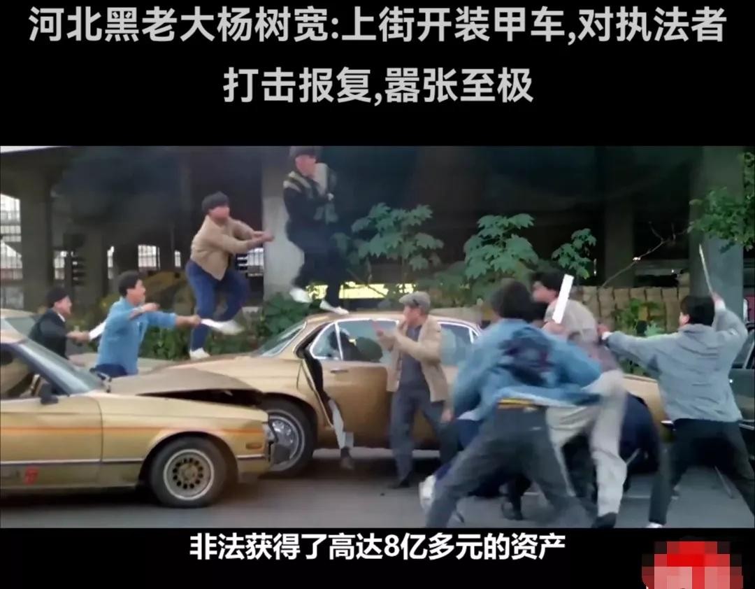 拥有38支枪的杨树宽很快成为唐山黑道一哥,敲诈勒索他人金额高达8亿多元,90年代8亿绝对是天文数字。有钱有人有枪后,杨树宽又专门搞来辆军用装甲车,常提着q带着小弟开着装甲车上街巡逻,一次,两名公安干警执勤中拦截装甲车,被打成重伤,后又有4名公安干警遭打击报复。