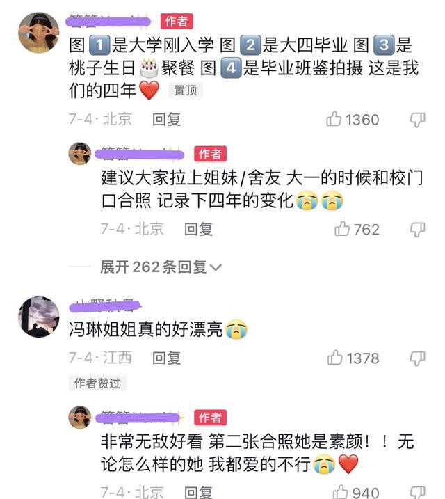 这位来自中国传媒大学的女生一共发了4张图片到社交媒体,除了两张是毕业照合影,还有两张分别是刚入学的合影和好友生日聚餐时的照片。看到照片上6个阳光漂亮的女生,让人不禁感叹中国传媒大学果然是盛产美女的地方,个个都气质绝佳,长得像女明星,惊艳绝伦。