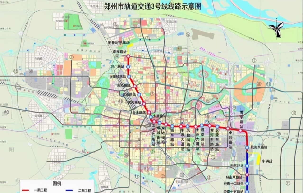 郑州这个城市开通地铁比较早,这个城市是第16个开通地铁的城市,现在已有运营的线路是五条,分别是1号线2号线5号线9号线14号线这五条线都是采用的地铁系统。当然现在在建的线路也很多,有十段线路正在进行中,小编今天要讲的三号线也是其中之一。这条三号线在郑州算是比较重要的一条地铁线,它是属于中心城区的西北至东南走向的骨干线路。预计在2020年12月28日就可以开通运营了。