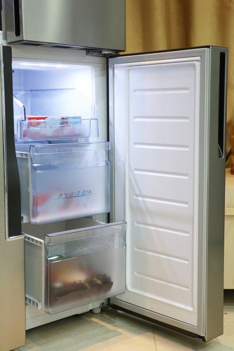 关于对开门冰箱相信大家都知道,其实就是将冰箱内部分为左右两个区域的冰箱,一般左边是冷冻区,右边是冷藏区。而十字对开门冰箱,则是在其基础上划分为了三个区域,呈T字型布局,增加了一个变温室。