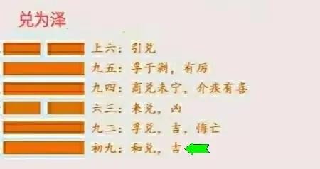 我们仔细观察卦象,初九爻处于兑为泽卦的最低端且敌应六四爻,意味着势单力薄,与人为善才是立身之本,这就是爻辞所对应的卦象。