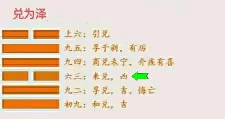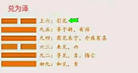 我们再认真观察卦象,上六爻属于兑为泽卦的尾声,局势即将跳转到风水涣卦,上六爻在努力挽救兑道,这就是爻辞所对应的卦象。