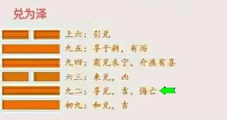 我们仔细观察卦象,九二爻属于内卦兑为泽的中爻,意味着言行举止中规中矩,当然会吉利,这就是爻辞所对应的卦象。