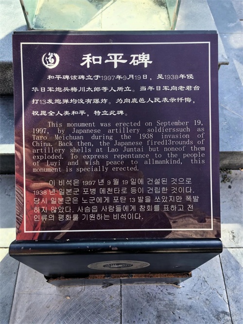 当年日军向老君台打13发炮弹均没有爆炸。中日和平建交后,1997年9月,当年参与轰炸的日本人梅川太郎等人立和平碑于老君台处,向鹿邑人民表示忏悔,祝愿全人类永远和平共处。