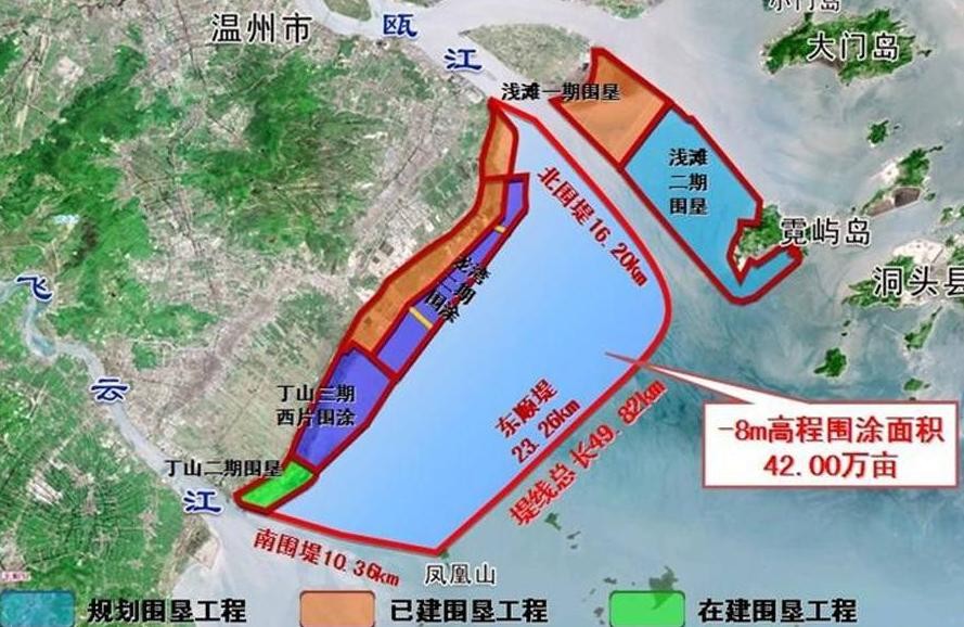 被称为基建狂魔的中国,还真是从来不让人失望,我国近些年也有突破,进行了不少填海造陆工程,例如南海七连屿、海南南汇新城等等。今天要说的也是中国最“宏伟”的填海工程:耗资600亿,打造20万亩海上城,直接将两座山作为石料进行填海,这一工程就是瓯飞工程。瓯飞工程是全国单体最大的围垦工程,为何要在温州修建这样一个工程呢?