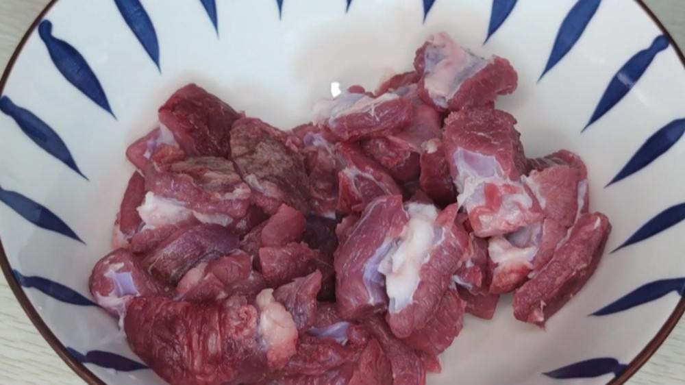 1.牛腩先改刀切成宽一点的条,然后再改刀切成大小均匀的块。