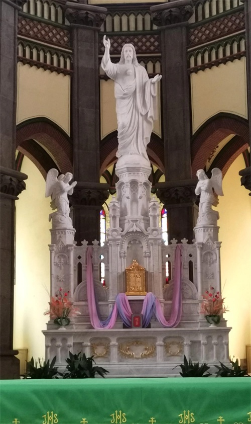 洪楼教堂可免费参观,不用预约,随到随看,周一至周六上午九点开门。这里几乎每天都有宗教人士在内宣讲天主教教义、历史、故事。工作人员告诉我,每天早上六点都有教众来此祷告,365天从不间断,每周日有较大的宗教活动,有时还能见到在此举行婚礼的信教人士。