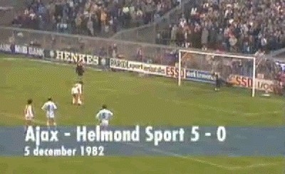 1982年,克鲁伊夫与阿贾克斯的队友奥尔森完成了一次点球点上的“二过一”配合,最后由克鲁伊夫推射空门得手。