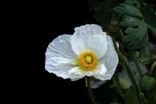 虽然罂粟花被人们认为是罪恶之花,本身却有希望的意思,充满诱惑的罂粟花是死亡之恋的代表,体现出爱情的偏激,对于深刻的感情,最好忘却的办法是遗忘,白色罂粟花体现了一种释怀,同时又是华丽、高贵的代名词,吸引无数人沉醉其中。