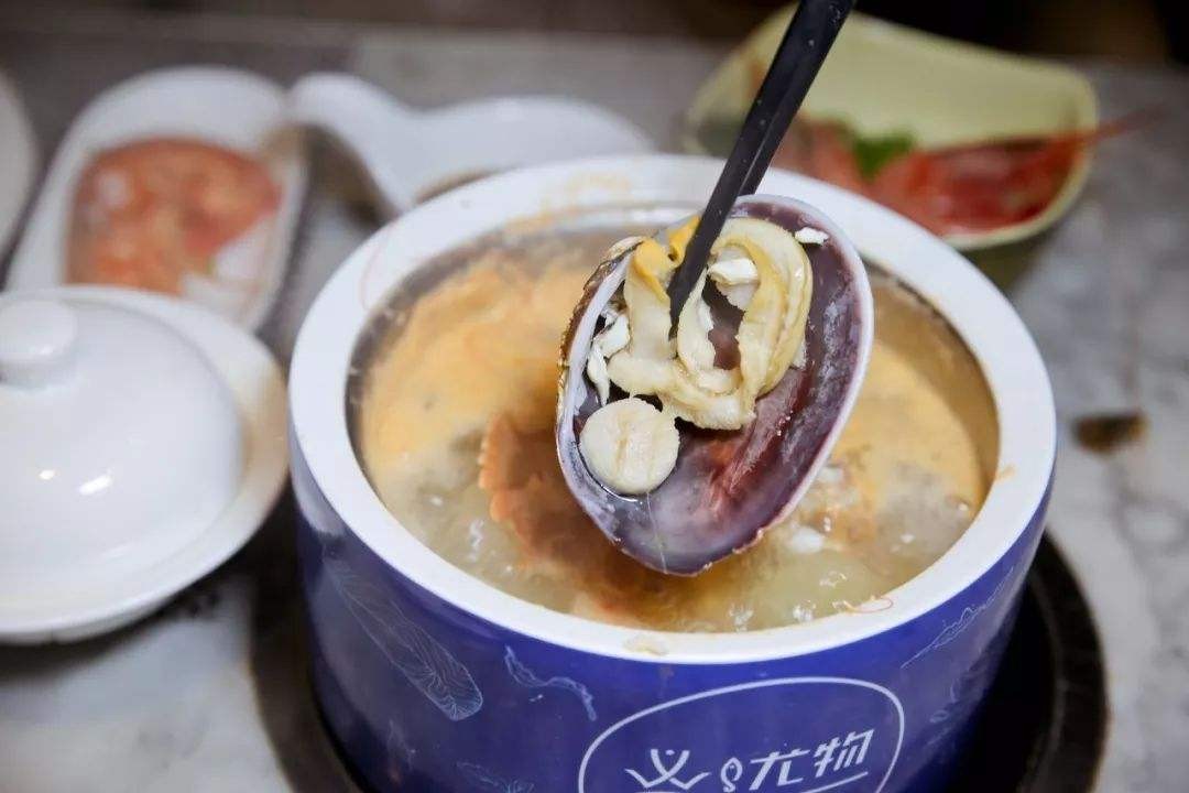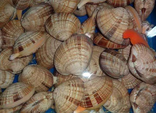 紫石房蛤因壳内侧呈紫色,又名内紫蛤,俗称天鹅蛋、大蚬子,贝壳坚厚,壳体略呈卵圆形,壳表黄褐色,壳内面暗紫色并泛珍珠光泽;成贝壳长6~8厘米、重70~85克,最大者体壳长12厘米、重400克;肉质肥大,味道鲜美生吃或下汤尤佳,是蛤类上品。