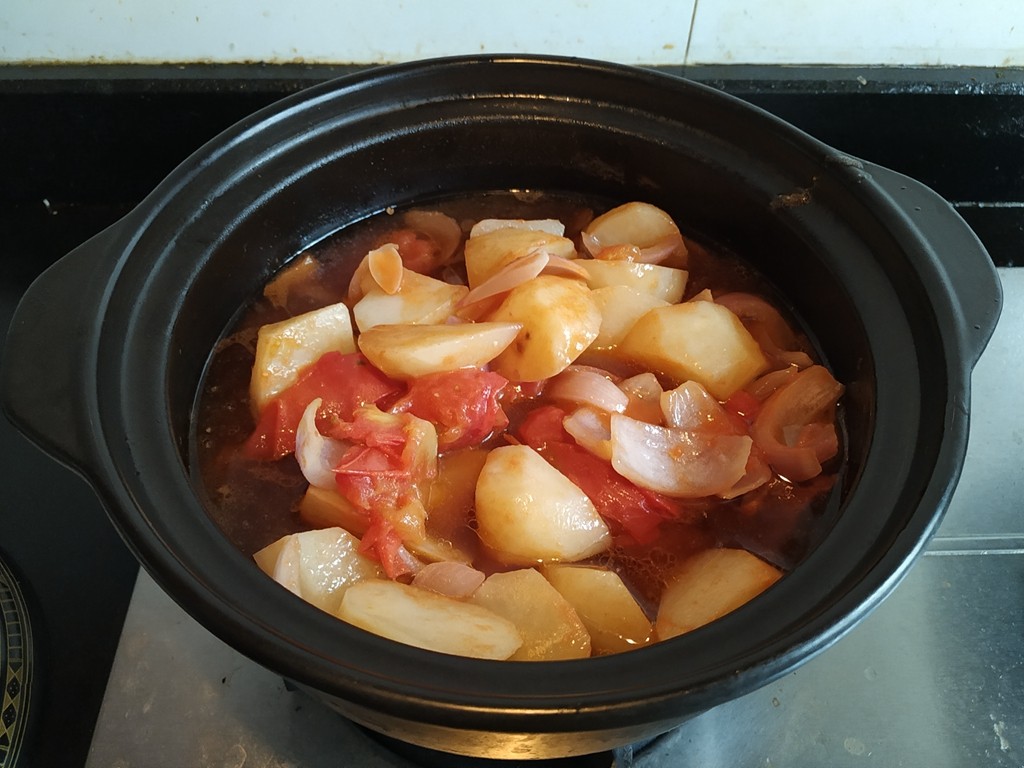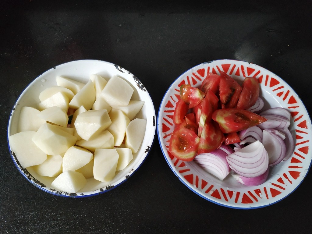 做法;1.土豆去皮,洗净切块,洋葱,番茄洗净切片。