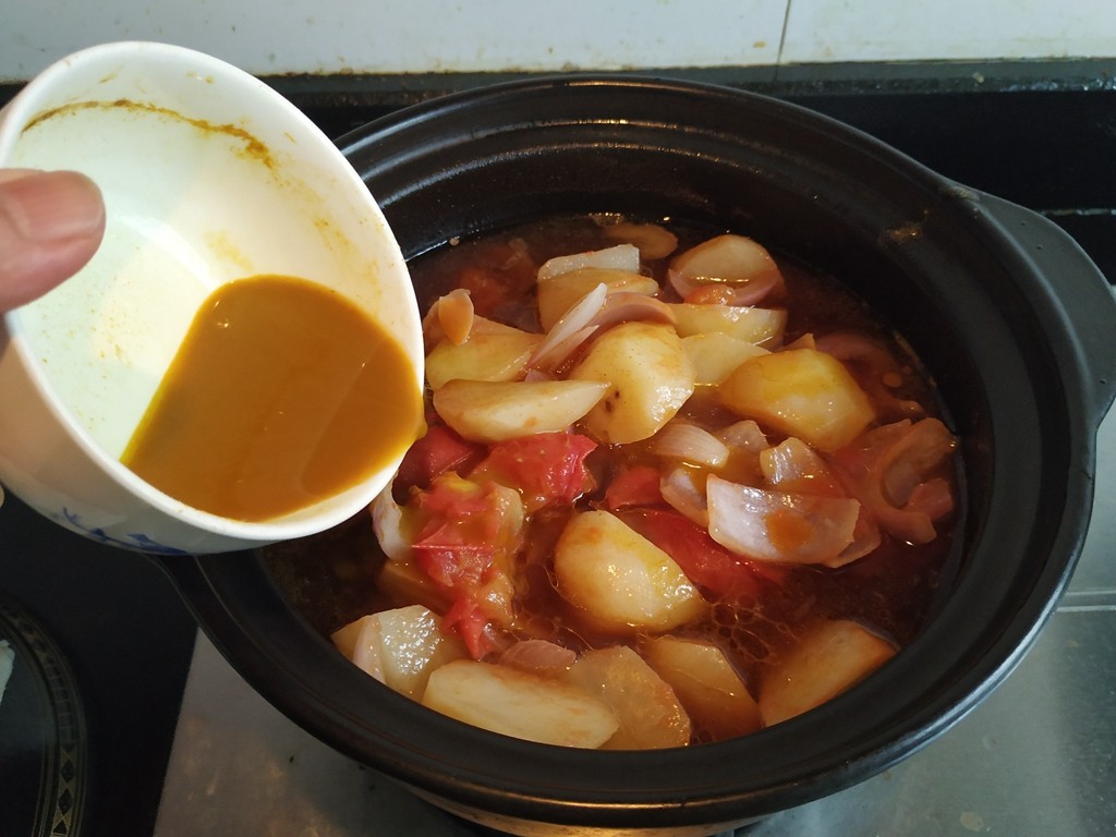 12.放入咖喱粉调成的汁,