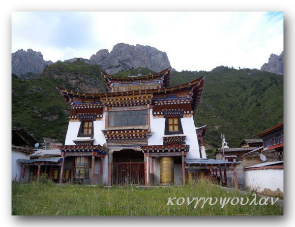 石门寺位于卓尼县洮砚乡石门寺村,原名道帏贤巴林,明万历二十三年(1606年),由洮砚加玛沟人哲增卢录哲勒珠创建,海拔2452米。寺院坐东向西,占地东西长48米,南北宽49米,山门朝西,内有僧舍3间,坐北朝南,均为平房。经堂为歇山桃檐式土木结构瓦房,内有八棱形柱四根,大殿内南北两壁有四大天王画像两幅,佛殿南北两壁绘有对称的五位佛像。东西墙壁中央悬挂着新绘的三位佛祖的画像。经堂为三大间,南北长11米,东西12.5米,院内东南角有碑一块,即“石门寺碑记”用藏、汉两文刻制而成。