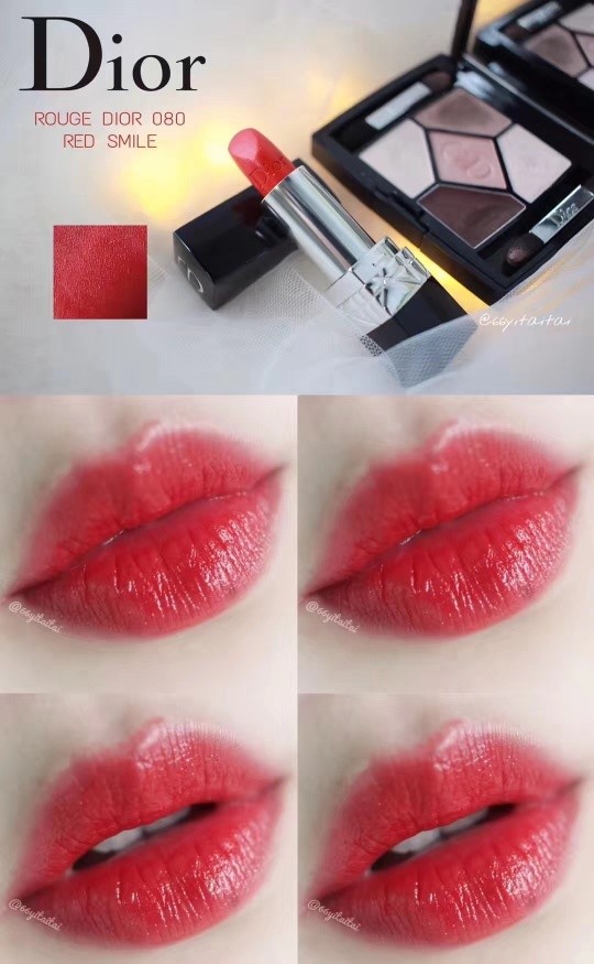 涂上后正红色,滋润显色,唇红齿白就是你。唇膏核心白色CD LOGO部分含有护理唇部的成分,上妆的同时有效滋养唇部肌肤哦!