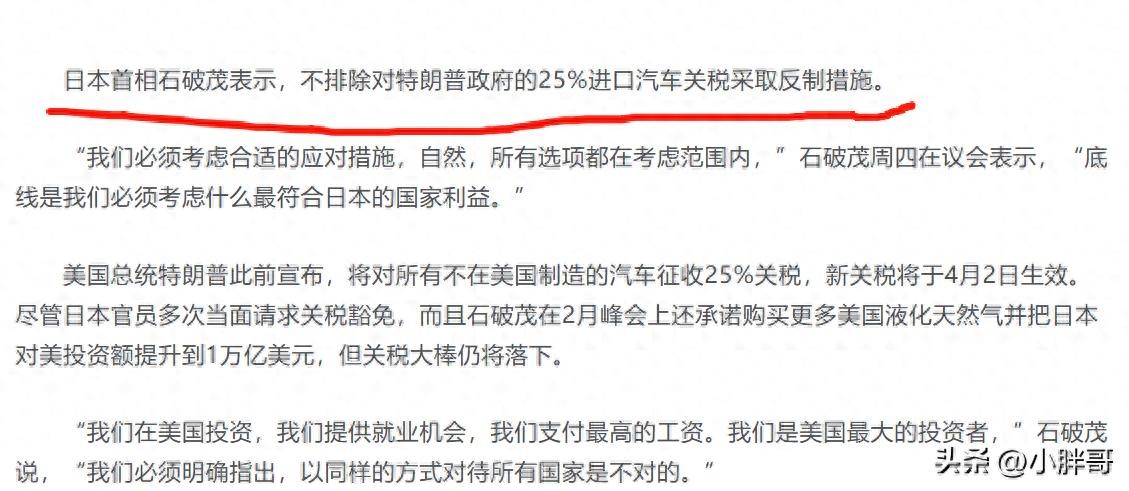 在当天的国会答辩中,石破茂面对议员关于美国汽车关税问题的质询时,首次公开提及报复性措施的可能性。"我们会考虑最有效的应对方案,"石破茂强调,"所有选项都在讨论范围内。"这番表态立即引发日本股市汽车板块的剧烈波动,丰田、本田等主要车企股价应声下跌。