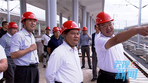 李纪恒看站房施工进度、听规划建设汇报,他说,文山从无到有,一步迈进高铁时代,具有划时代意义,将为贫困落后地区实现后来居上奠定坚实基础。