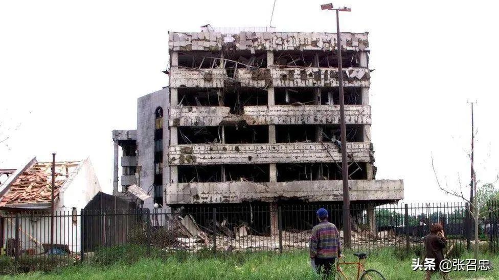 被轰炸后的中国驻南大使馆废墟 (图源:BBC)