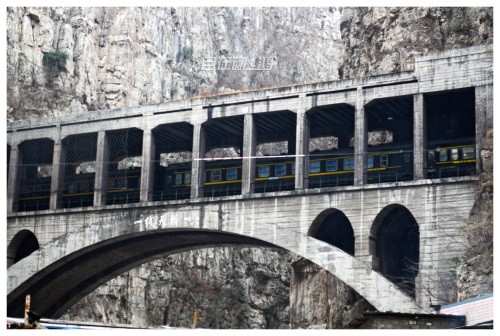 早就听说这里有一个铁道兵博物馆,这次专门开车上去。博物馆位于公路上方的悬崖上,入口比较隐秘,是在路边一个不起眼的隧道。隧道里面一片黢黑又长又窄,刚好能通过一辆车,如果对向来车就麻烦了。就这样提心吊胆地开了几分钟,眼前突然一亮,外面花红柳绿,犹如进入一个世外桃源。
