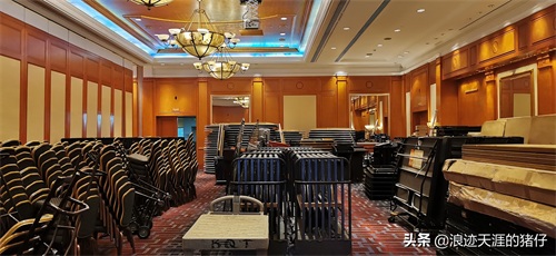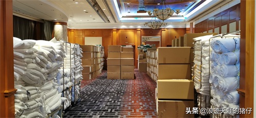 三楼的宴会厅摆满了酒店的器具,备品。等