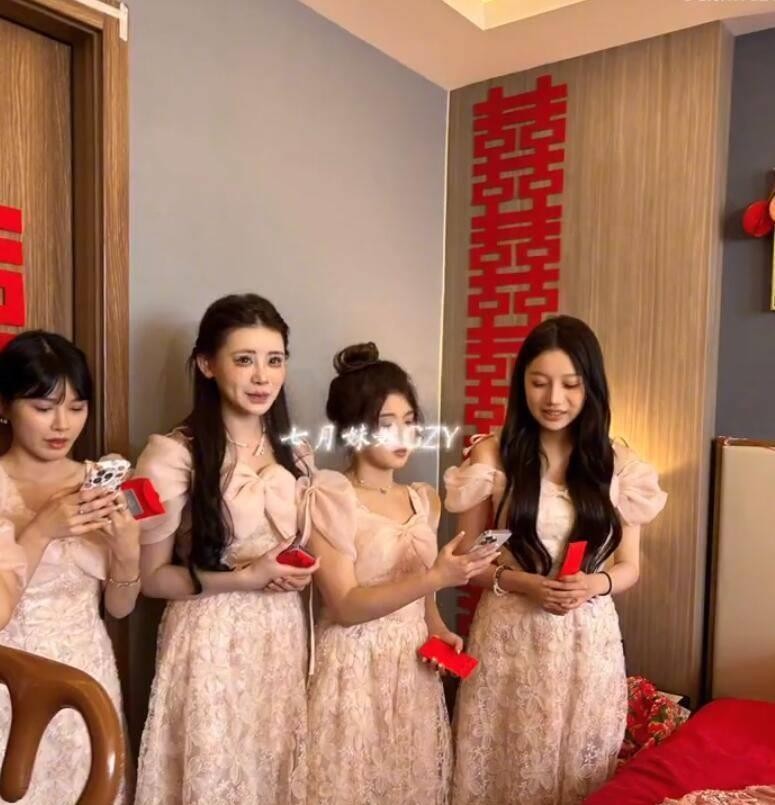 在简单的布置中,可以看到床头和墙壁贴满了囍字,新娘杨清柠身着中式绣服,伴娘团的阵容也十分精彩。最令人惊叹的是酒店外停着的十几辆豪车,其中不乏劳斯莱斯等名车,想必这些车子的花费已经不低。为了筹备这场婚礼,杨清柠和乔司花费了不少心思。