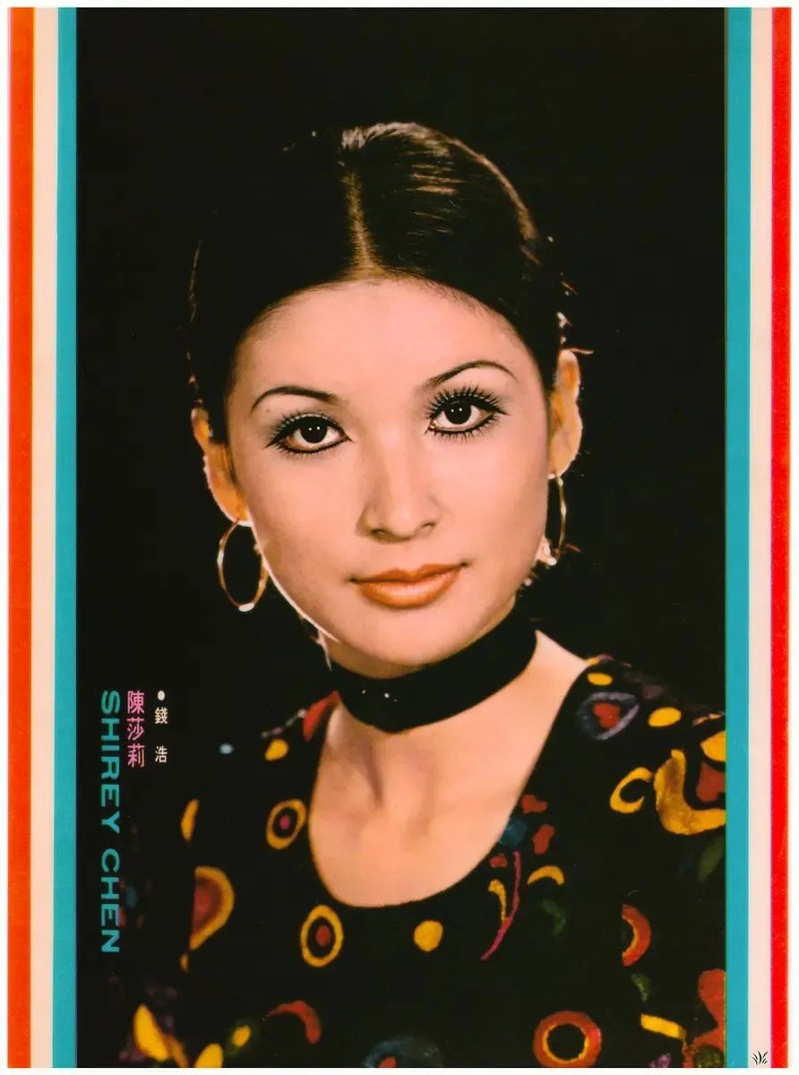 年轻时的陈莎莉长相颇有异域风情,眼眶深邃,鼻梁长且挺,量感重的五官画上浓妆妖娆出彩,细弯眉+厚重眼妆,一种波斯舞娘既视感扑面而来。