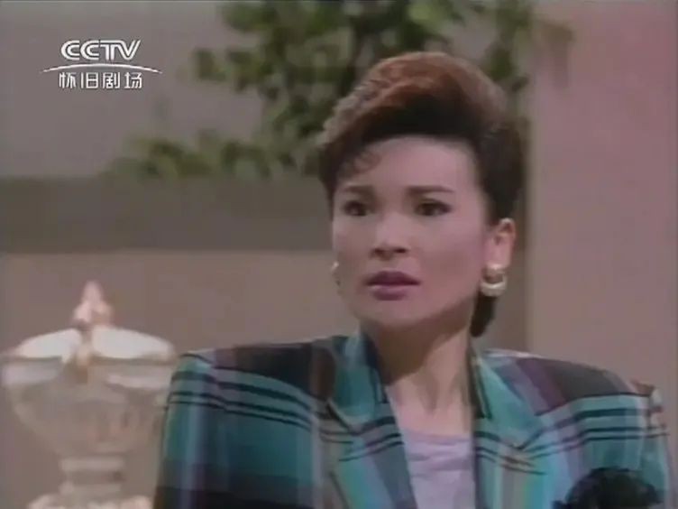 1988年,陈莎莉状态回来了不少,穿着垫肩格纹西装非常时髦,卷发盘起,脸上的钝感加重了人物性格,完全的女强人。