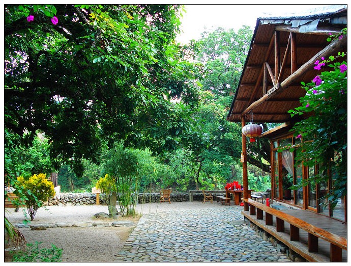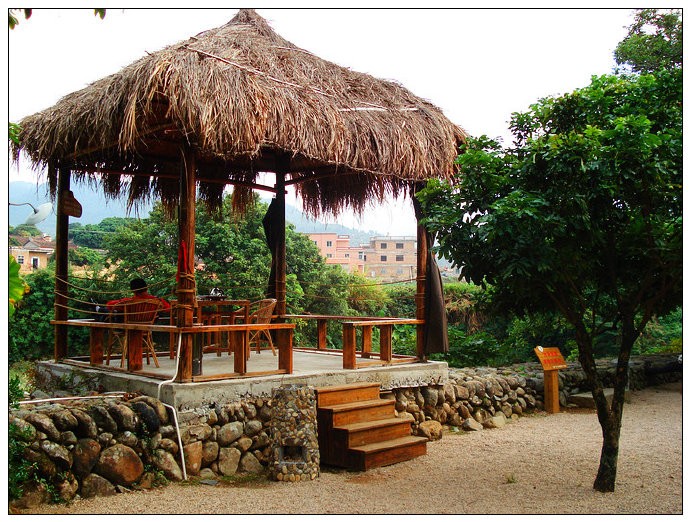 有几间茶室临溪而建,可以坐在大阳台上饮茶。