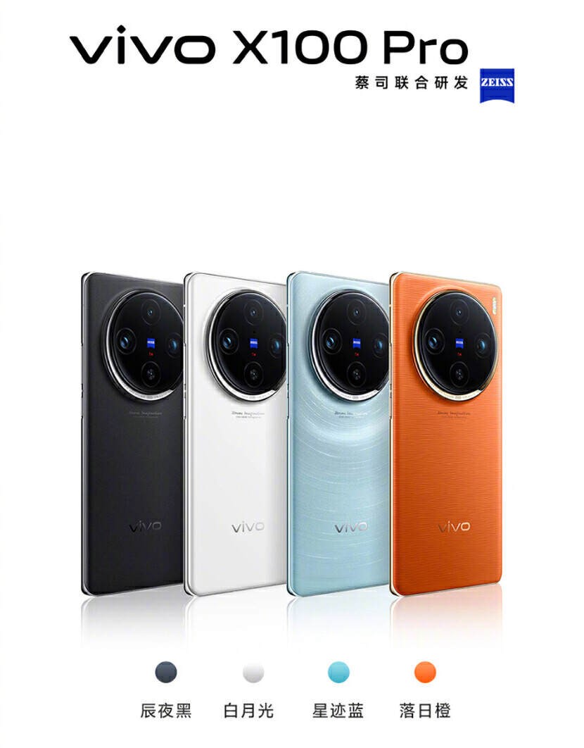 vivo X100 Pro重量约为225g,搭载联发科天玑9300处理器,6.78英寸120Hz高刷OLED曲面屏,2160Hz高频调光,日环云阶设计,玻璃、素皮后盖。vivo X100 Pro拥有辰夜黑、白月光、星迹蓝、落日橙4种配色,配备一英寸主摄,蔡司APO超级长焦,全新自研影像芯片V3,支持IP68防尘防水,还有独立HiFi芯片,出厂搭载OriginOS 4系统。