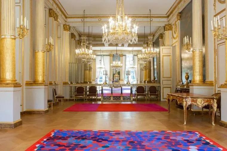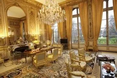每位新上任的总统都会给鎏金大厅(总统办公室)以及私人房间带入个人风格。戴高乐在鎏金大厅放入了路易十五风格的办公桌,还在个人房间放置了一张2.1米的床(戴高乐身高196cm)。现代风的蓬皮杜则在自己的房间挂上了带有伊夫·克莱因和阿尔贝托·贾科梅蒂亲签的作品。而蓬皮杜的继任者和他截然不同,德斯坦就更喜欢18世纪的古老家具。至于密特朗,他想要年轻设计师菲利普·斯塔克给他的房间带来些许新鲜感。现任总统马克龙同样也选择了当下时兴的装潢:画家皮埃尔·阿列钦斯基绘制的挂毯、造型艺术师克劳德·勒维克设计的地毯、设计师弗朗西斯科-帕萨尼蒂设计的混凝土桌,墙上是由街头艺术家奥贝绘制的壁画。