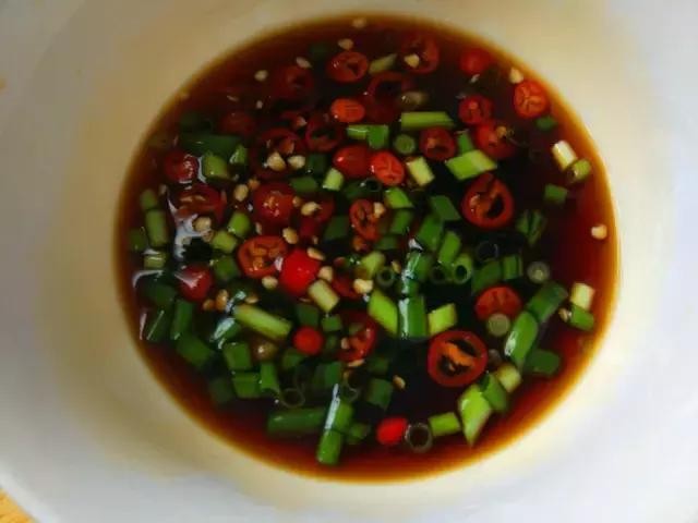 沙茶酱+辣椒油+耗油+泰椒+小尖椒+姜汁+葱沫